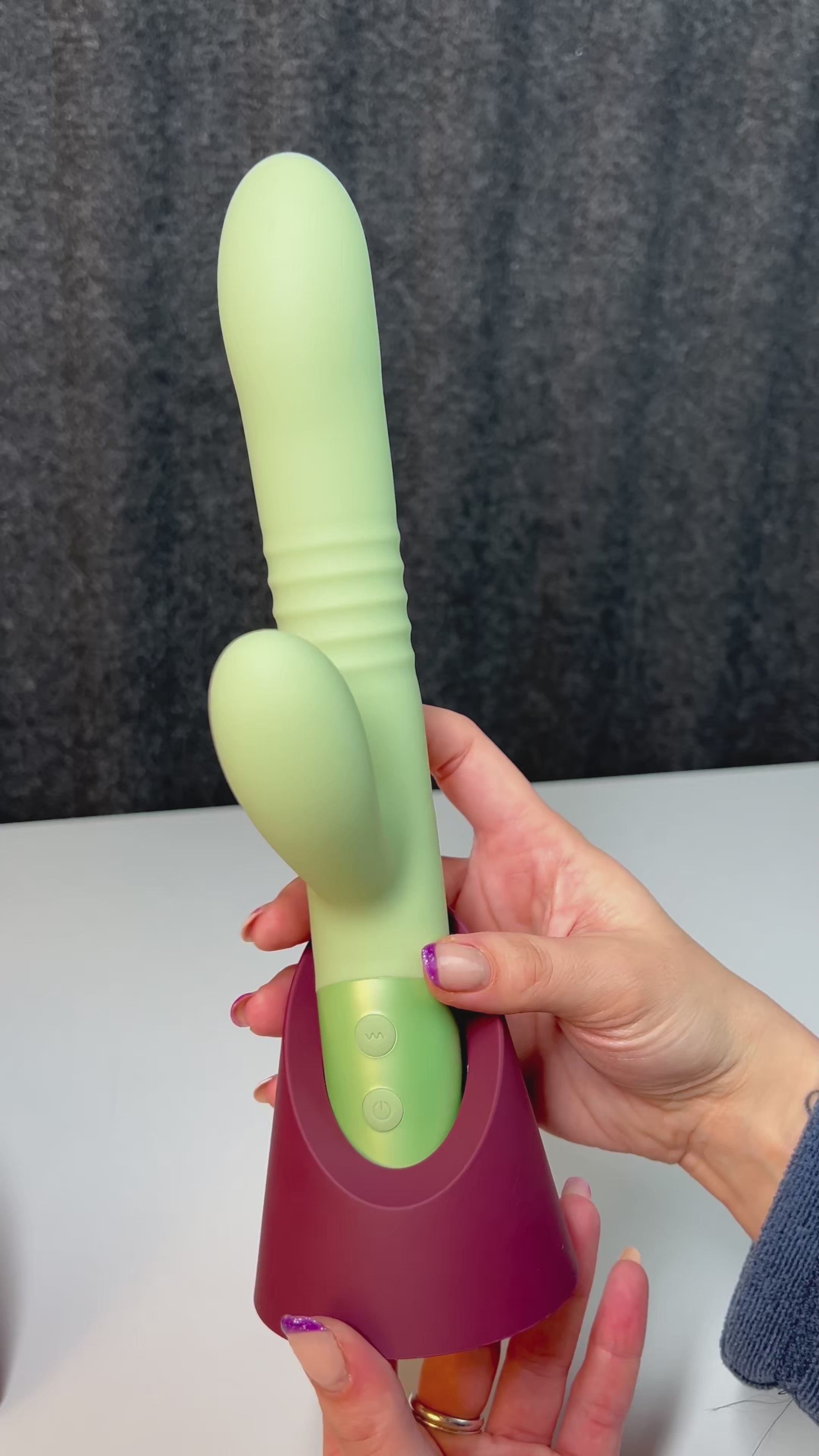 Der einführbare Teil hingegen vibriert mit einer „Auf- und Ab“-Stoßbewegung, die die Stimulation noch tiefer und intensiver macht und direkt den CUV-Bereich (und den berühmten „G-Punkt“) trifft.